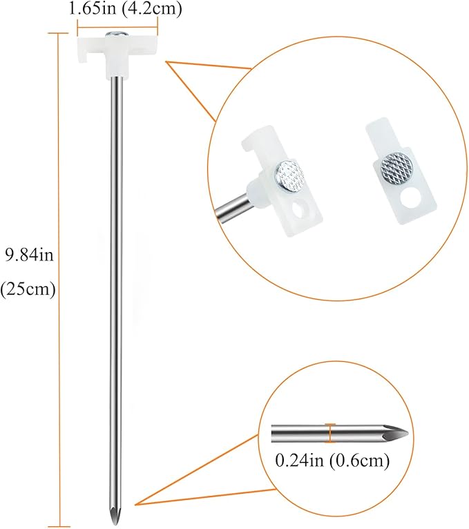 - Sharp Point At The End: Making them easy to push into the ground and they also have a hook at the top for tying down ropes or cords. Whether you are camping on a grassy field or rocky terrain, these stakes will be able to securely anchor your tent