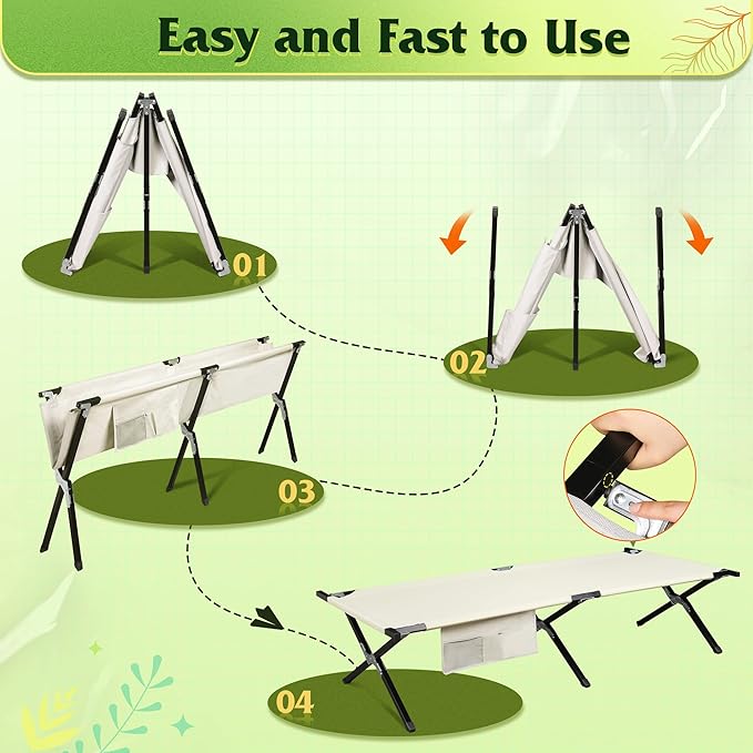 - 【Smart Storage】The cots for sleeping are built-in 3-in-1 side pocket securely holds water bottles, sunglasses and other essentials during outdoor activities. It also functions perfectly as a daybed for afternoon naps with easy access to your belongings.