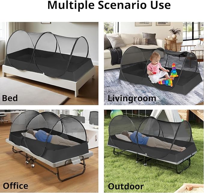 - Foldable & Portable Mosquito Net:Large Size-78 x 39 x 28 inch,suitable for a single adult and children to play inside.It is packed in a round non-woven bag for easy carrying when folded.