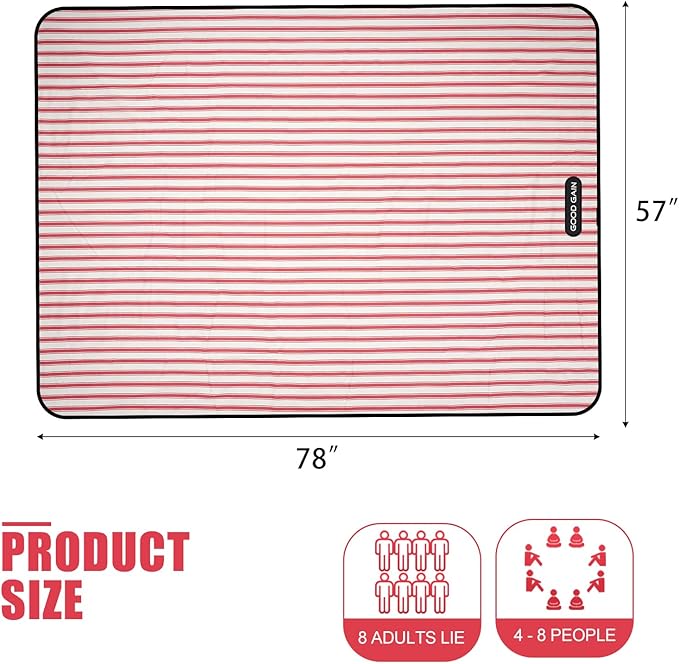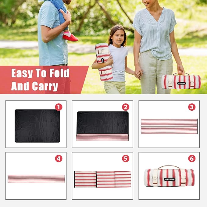 G GOOD GAIN Picnic Blankets Waterproof - Extra Large Outdoor Blanket Sand Free Foldable with Carry Strap for Beach, Camping, Park Grass, Hiking, Travel, Concerts, Indoor(Apple)