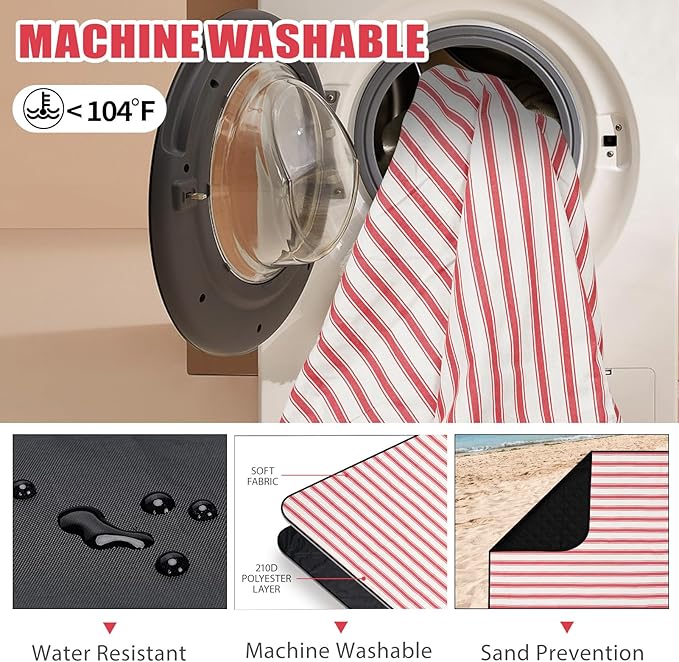 - Machine Washable & Easy to Clean - Adopting heavy duty canvas, cycle machine washing does not run cotton, machine washable below 104℉/40℃,compare with other HAND WASH OR SPOT CLEAN picnic blanket, it’s cleaner and saves much of your time, and. It is easy to shake off sand from a beach blanket