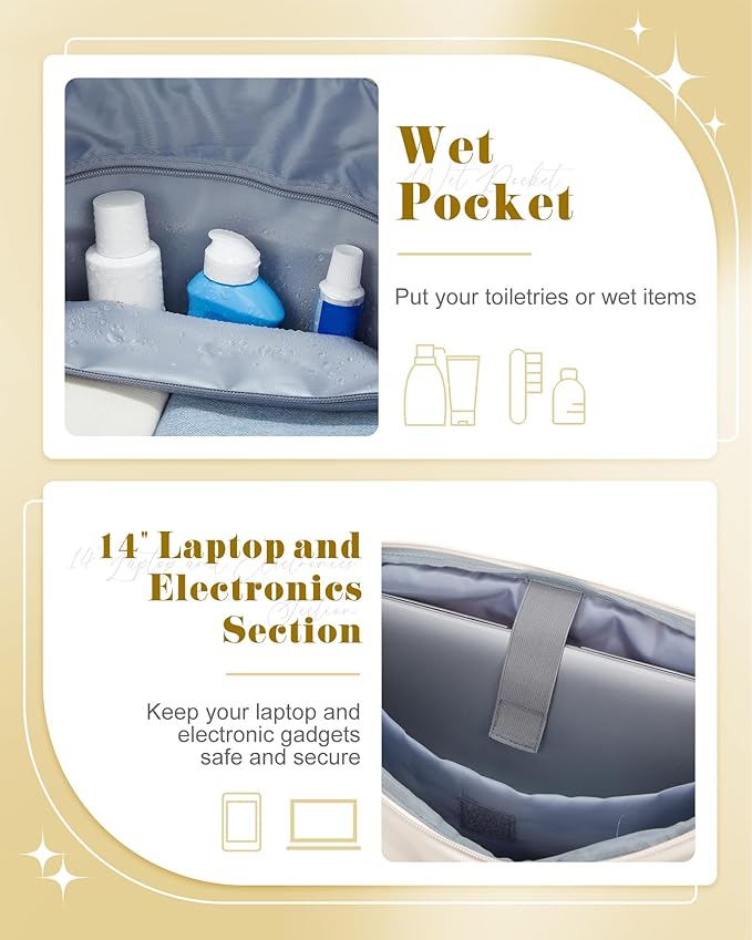 • Wet and Dry Sports Gym Bag: This women's travel bag is made of high quality waterproof fabric that is durable, waterproof and tear resistant. The zippered, waterproof PVC-lined pockets make it easy to store wet clothes, bathing suits or towels. Whether you're hiking, exploring the city, or taking a weekend getaway, this women's travel bag will be a reliable companion.