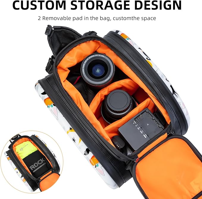 - INTERATED BODY FRAME: Hard to deflective during using.Protect clothes, shoes, phone, clothes, shoes, phone, cameras, kettle and other belongs into the bike trunk bag confidently.