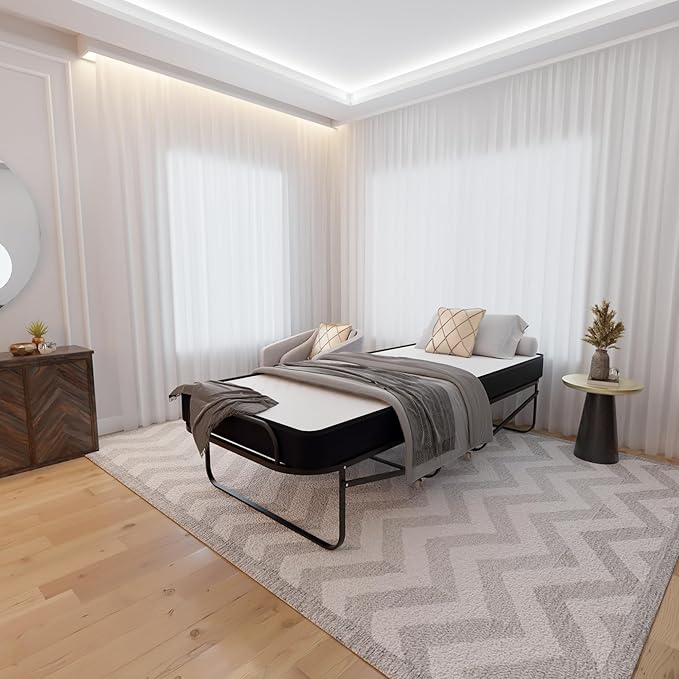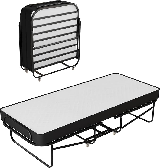 Greaton, 16-Inch Rollaway Folding Cot Bed with 5" Memory Foam Mattresses, Sturdy Metal Folding Frame, Fully Assembled, Great for Adults and Kids, 30-Inch, White