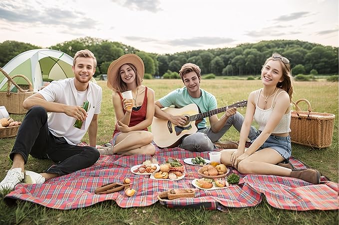 - <b>WATERPROOF AND SANDPROOF</b> – This blanket is made of acrylic fibers+ PE waterproof membrane, the surface is soft and comfortable. And the PE waterproof membrane blocks moisture, anti sand and waterproof. Easily wiped away by simply shaking and slapping. It is your perfect partner to keep dry in a rainy camp site or wet grass for picnic or sandy beach.