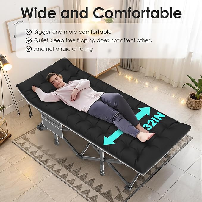 Suteck Camping Cot, 32In XXL Folding Camping Cot Heavy Duty Sleeping Bed for Adults 1200D Double Layer Oxford Cots for Camping W/Pilllow Mattress Carry Bag for Home Office Nap Beach Travel, 500LBS