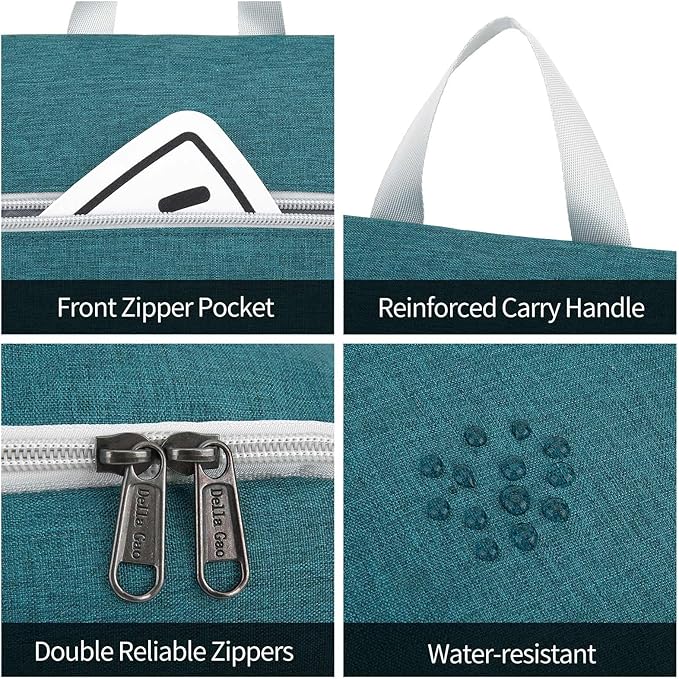 Della Gao Hanging Toiletry Bag for Women, Travel Toiletry Bags Makeup Organizer, Water-resistant Cosmetic Bag for Essentials Accessories (Dark Green)