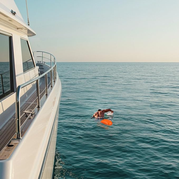 - SAFE& VISIBLE IN OPEN WATER: High-visibility design with brightly-colored ensures maximum safety in all water conditions. Be seen instantly by boats and lifeguards - whether you're training at dawn, swimming in choppy waves, or enjoying seasonal water sports